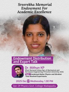• Sreerekha Memorial Endowment For Academic Excellence; Endowment Distribution  & Expert Talk on 17- December 2025.